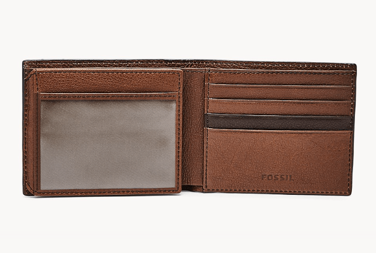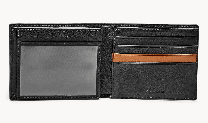Detalles interiores: 1 compartimento para billetes, 1 ventana de identificación, 2 bolsillos deslizantes, 6 ranuras para tarjetas de crédito