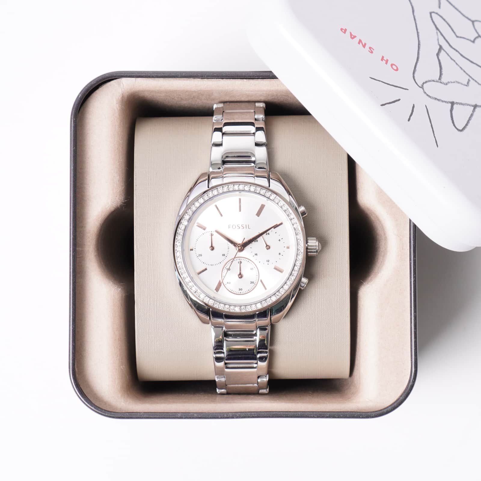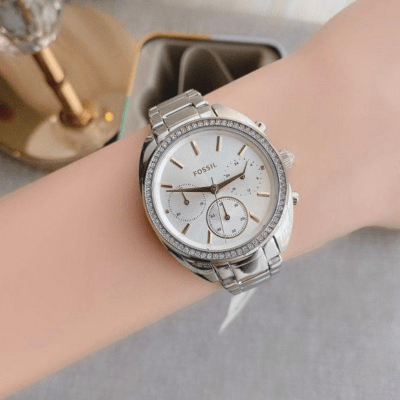 Con una banda plateada, cristal mineral resistente a los arañazos.