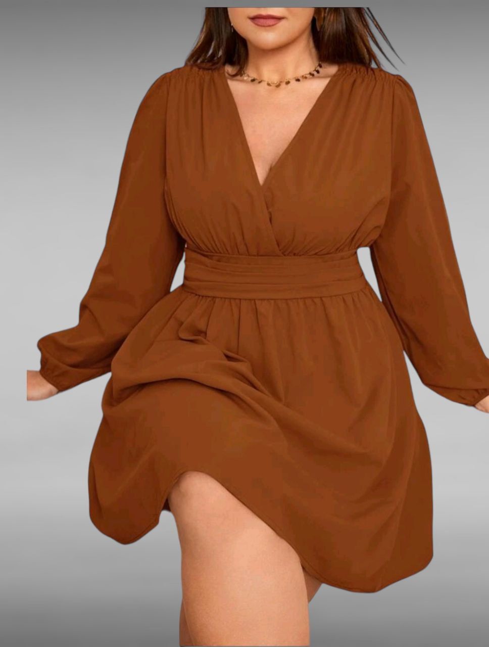 Vestido de cuello cruzado de manga farol
