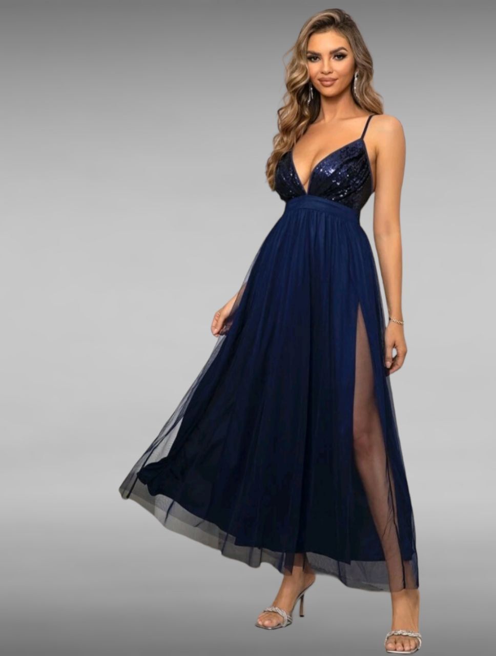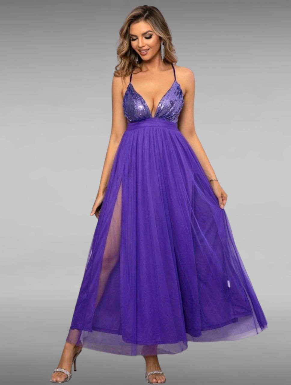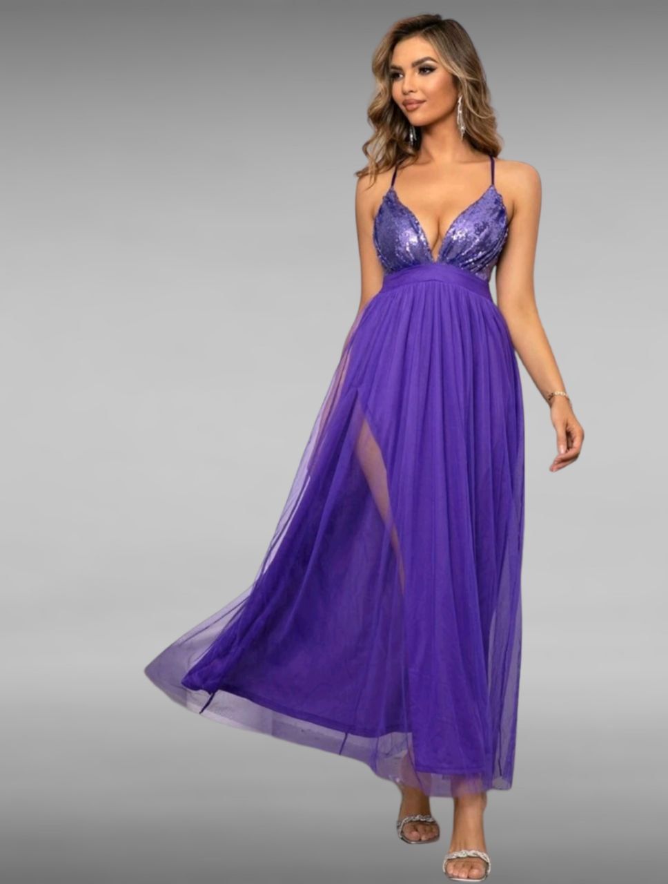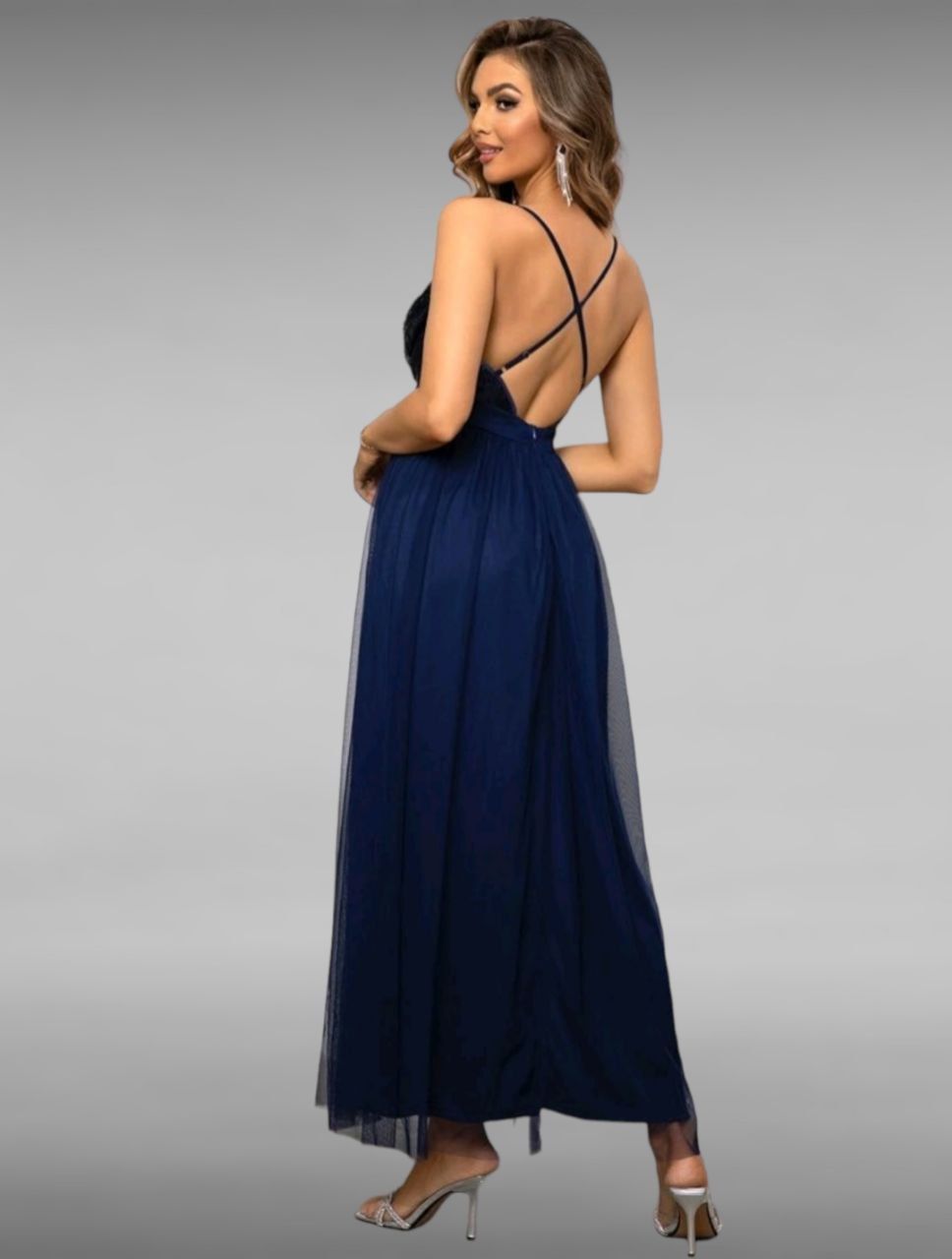 Vestido formal de tirantes de espalda abierta y lentejuelas